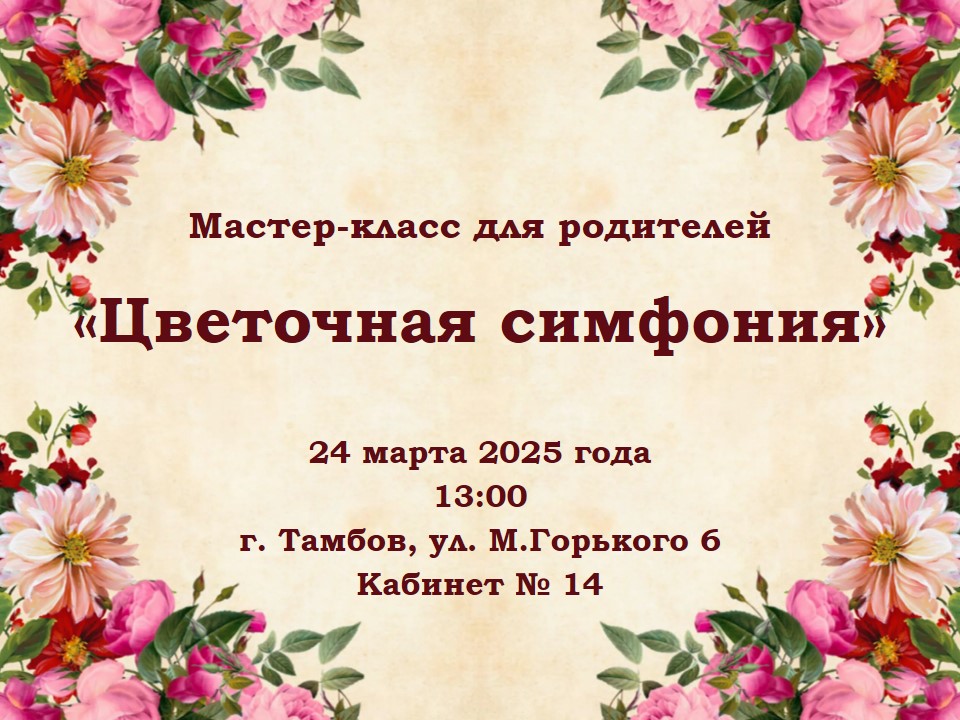 Мастер-класс для родителей «Цветочная симфония» 24 марта 2025